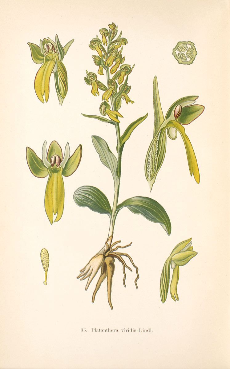 - Pronađoh biljku sa cvetovima u pupoljku koja mi najviše liči na Coeloglossum viride, tražio sam u Biologeru i gle čuda: više nije to nego Dactylorhiza viridis, a donedavno je bila Platanthera viridis.
